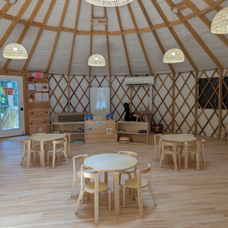 During weather conditions such as heavy winds, extreme cold or heat, or thunder and lightning storms, students are still able to attend school inside the yurt. We are proud to be able to offer year-round child care and remain open during difficult weather conditions.